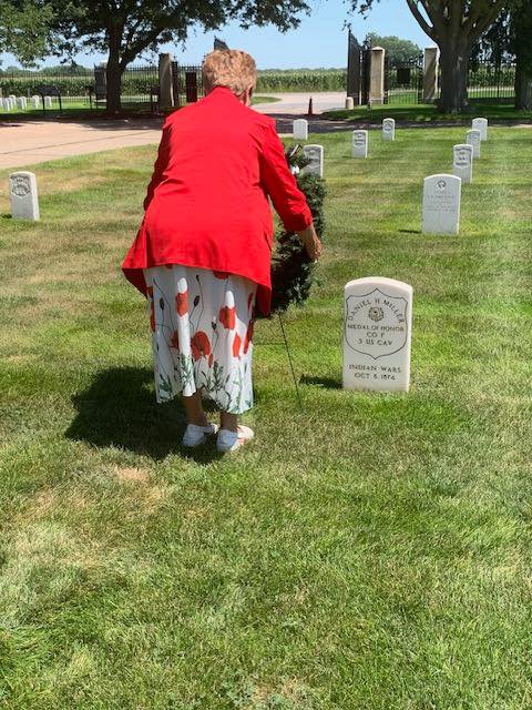 Past Department President Vicki Ozenbaugh's project was to present a wreath at every Medal of Honor recipients graves to honor their sacrifice. She was able to complete this by giving out her last wreath at Fort McPherson National Cemetery.