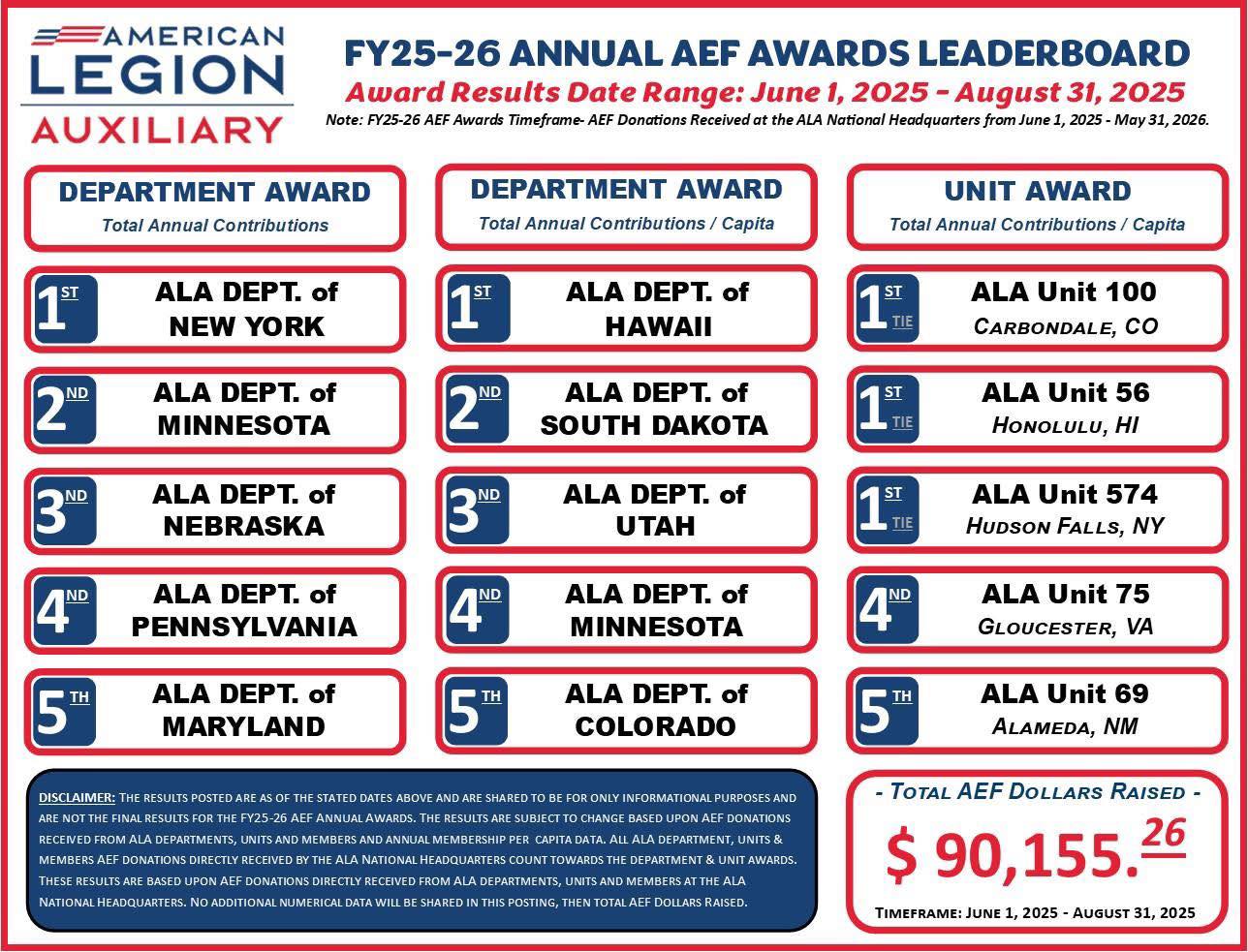 FY 25-26 Annual AEF Awards Leaderboard (06/01/25-08/31/25)